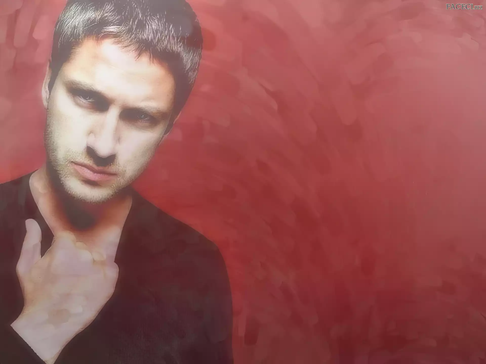 czarna koszulka, Gerard Butler, niebieskie oczy - faceci.biz